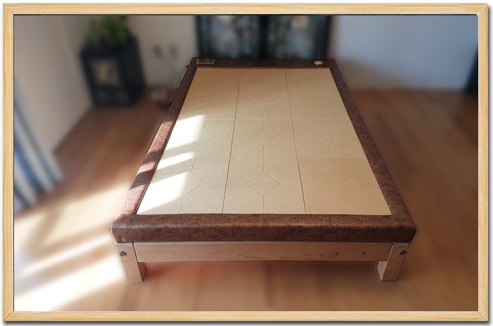 프레임은 타 회사 제품을 고객님께서 직접 구매하시고, 그 위에 보료만 시공해드렸습니다.